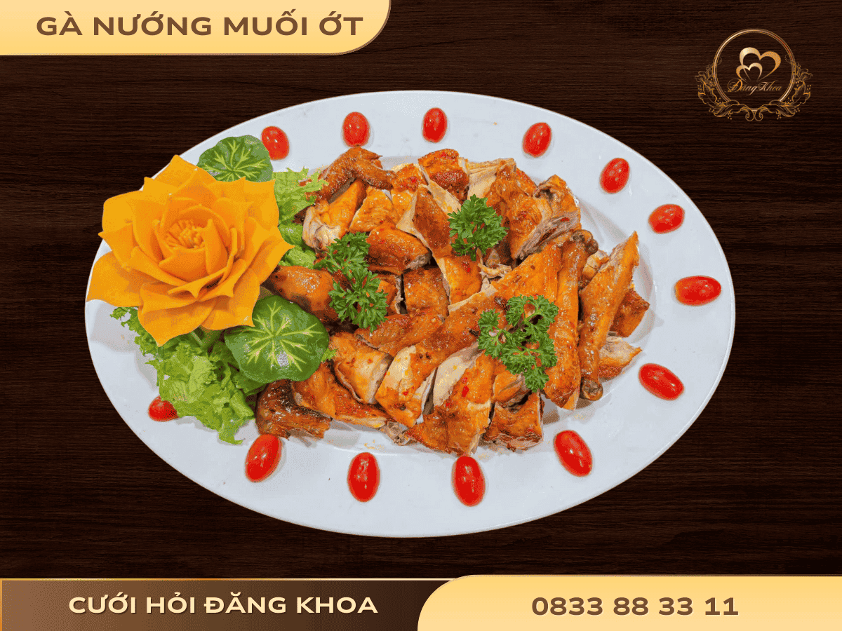Thực đơn 27 là sự hòa quyện tinh tế của ẩm thực truyền thống và hiện đại: Gỏi ngó sen tôm thịt ba chỉ mở đầu thanh mát, tiếp theo là Mực chiên giòn sốt chanh dây độc đáo, Gà nướng muối ớt ăn kèm xôi gấc đậm vị, Cá chẽm hấp bún nấm thơm ngon. Bữa tiệc khép lại trọn vẹn với Lẩu Thái hải sản – bún và Bánh flan béo mịn, mang đến trải nghiệm sang trọng, đầy ấn tượng.